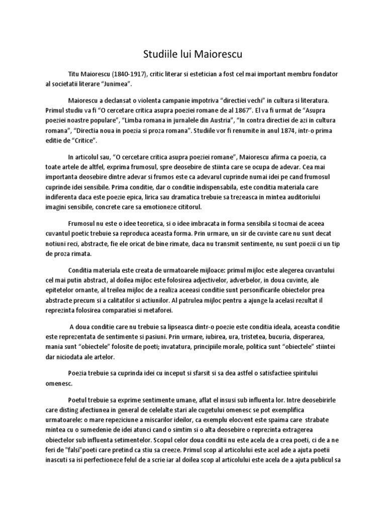 Studiu De Caz 5 Criticismul Junimist