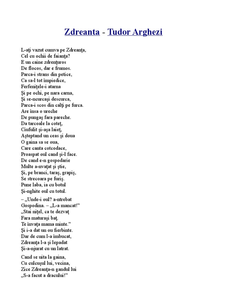 Invatam Si Ne Jucam Zdreanta De Tudor Arghezi