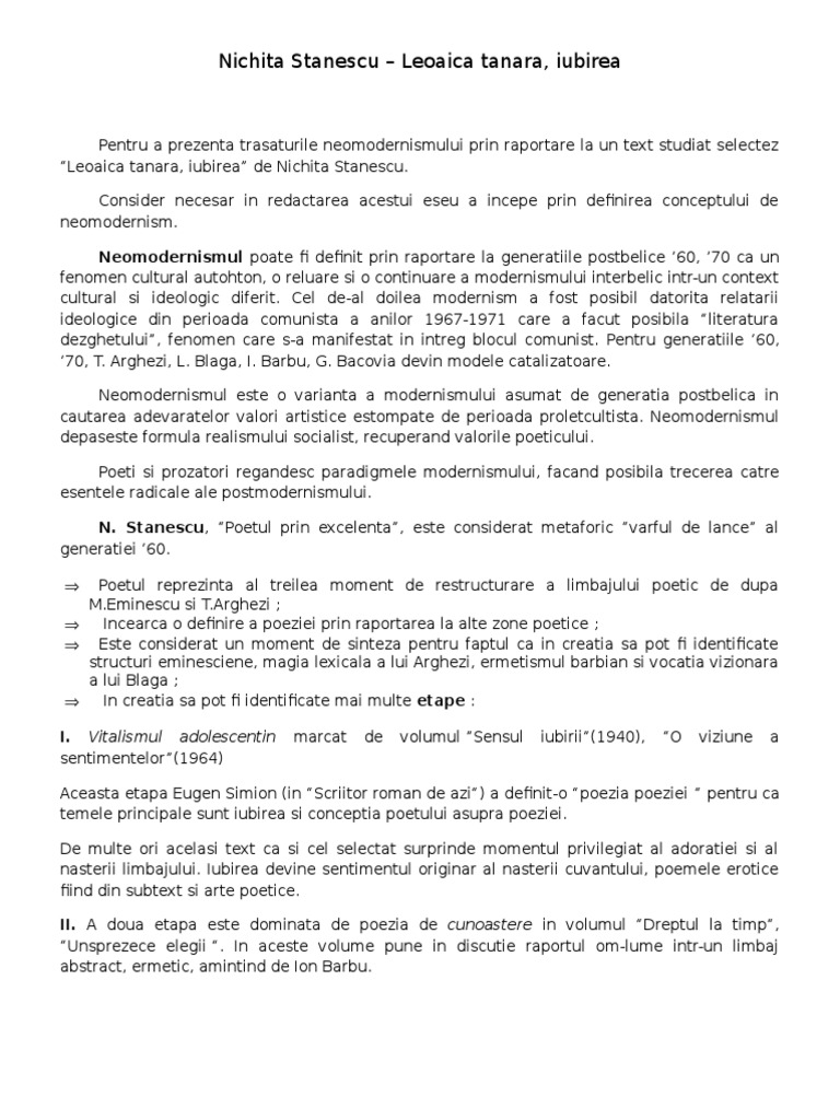 Doc Leoaica Tanara Iubirea N Stanescu Neomodernism Bianca Antochi Academia Edu