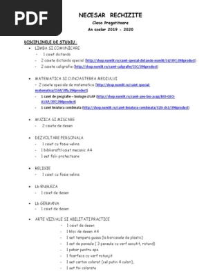 Necesar Clasa Pregatitoare20192020