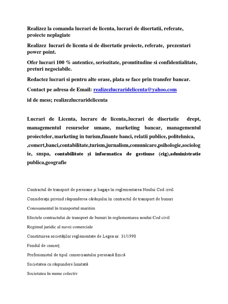 Doc Lucrare De Licenta La Comanda Lucrare De Licenta Lucrare De Disertatie Model Drept Managementul Resurselor Umane Marketing Bancar Managementul Proiectelor Marketing In Turism Finante Banci Id Licenteoriginale Lucraredelicenta