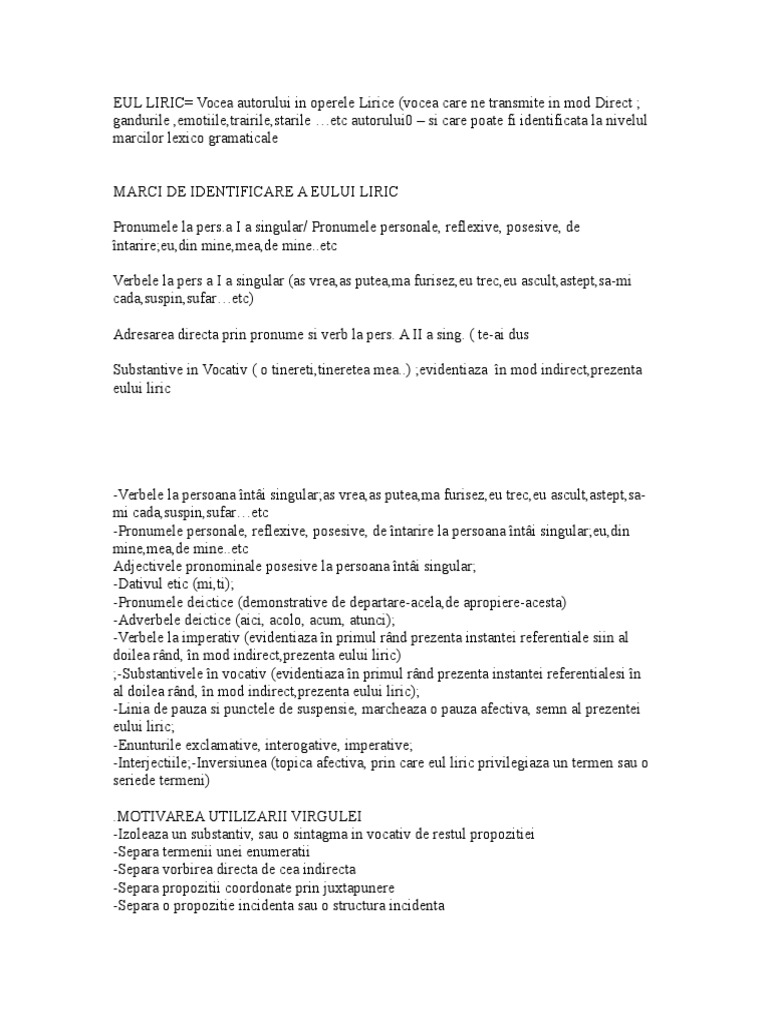 Eul liric este vocea autorului în operele aparținând genului liric și poate fi identificat la nivelul mărcilor lexico gramaticale. Adjective pronominale posesive pers. Ce sunt marcile lexico gramaticale. Eu cu parere de rau marturisesc ca am uitat.