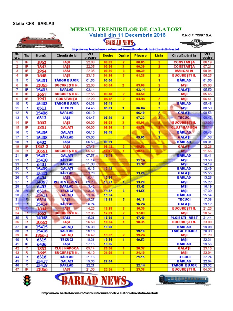 Foto Tabel Barlad Noul Mers Al Trenurilor A Intrat In Vigoare Realitatea De Vaslui