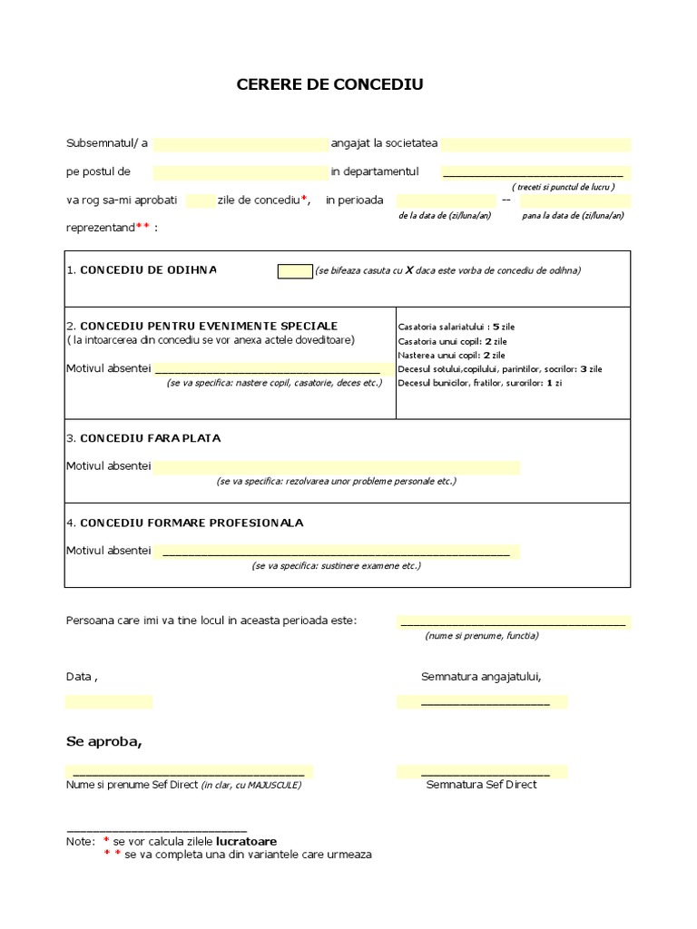 Cerere Concediu Fara Plata Model Word Pdf Sau Excel