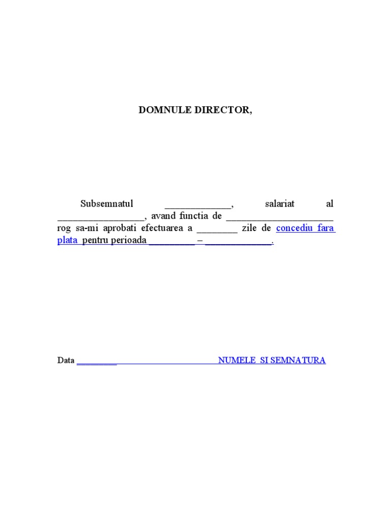 Model Cerere Concediu Fara Plata Word