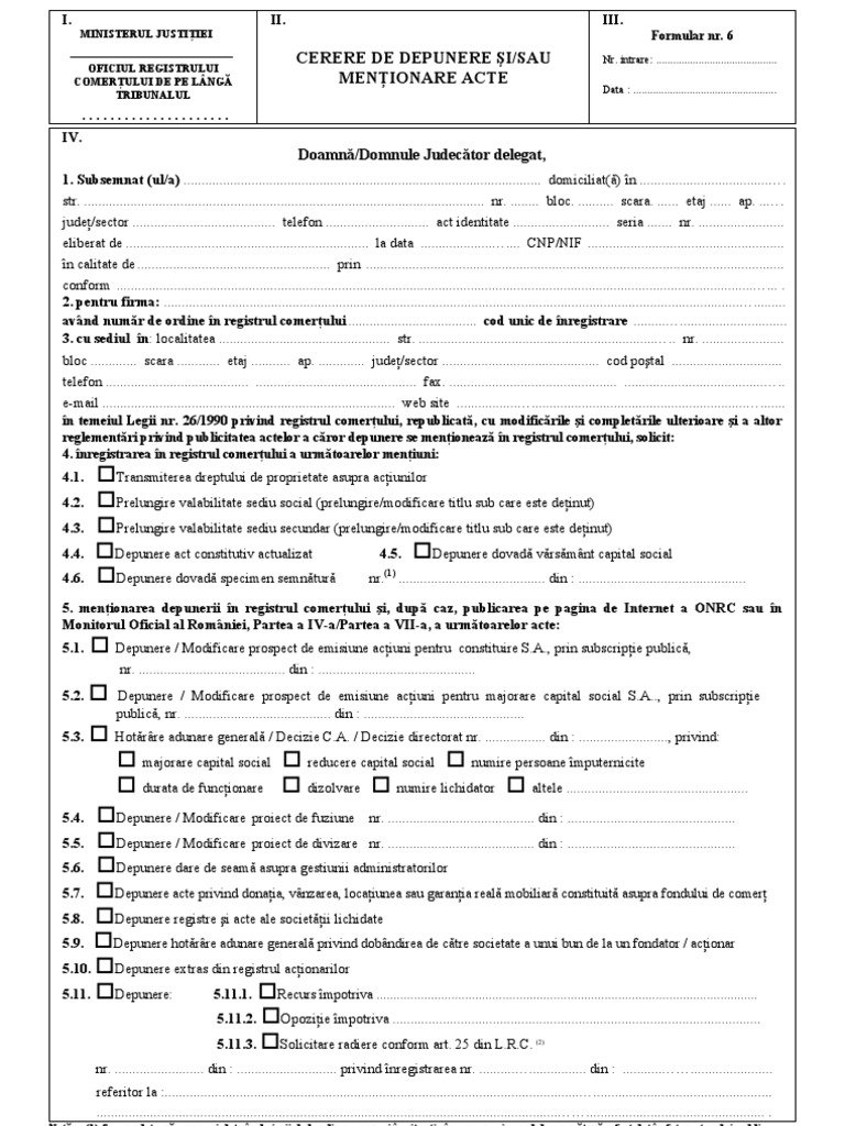 Cerere De Depunere Acte