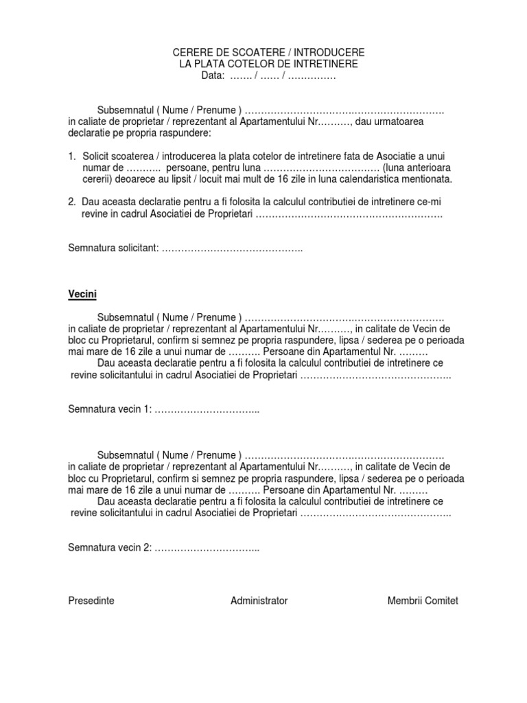 Model Cerere Scoatere De La Intretinere Pdf
