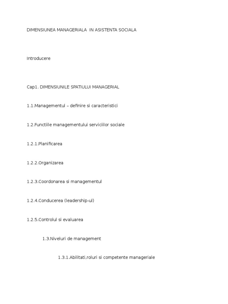 Dimensiunea Manageriala In Asistenta Sociala
