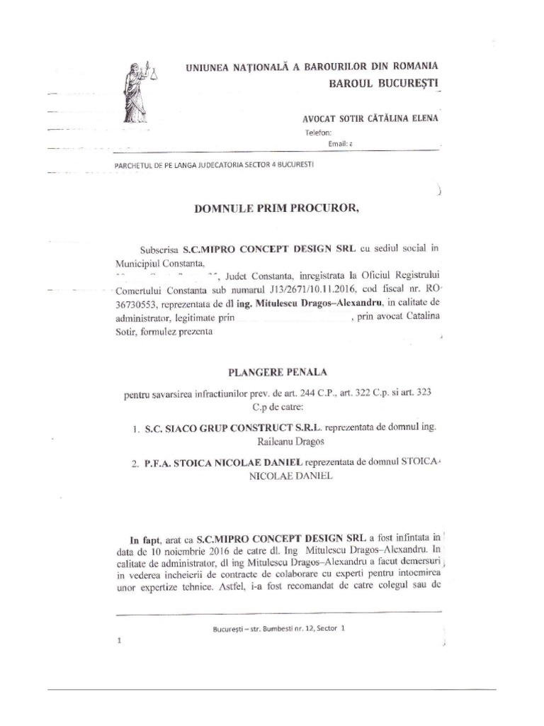 Plangerea Penală Depusă De Avocata Firmei Mipro Impotriva Lui Daniel Stoica