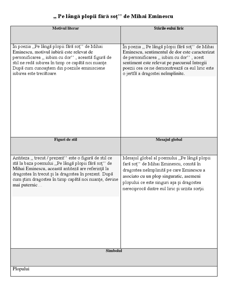 Pe Langă Plopii Fără Soț De Mihai Eminescu Docx
