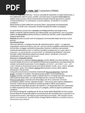 Pe Langă Plopii Fără Soţ De Mihai Eminescu