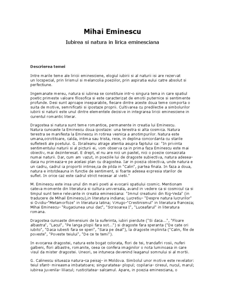 Tema Iubirii In Poezia Lui Mihai Eminescu