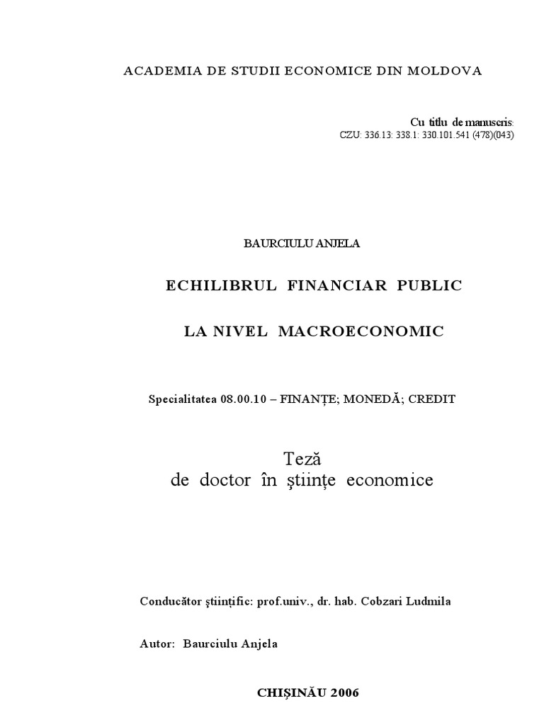 Echilibrul Financiar Public La Nivel Macroeconomic Conspecte Md