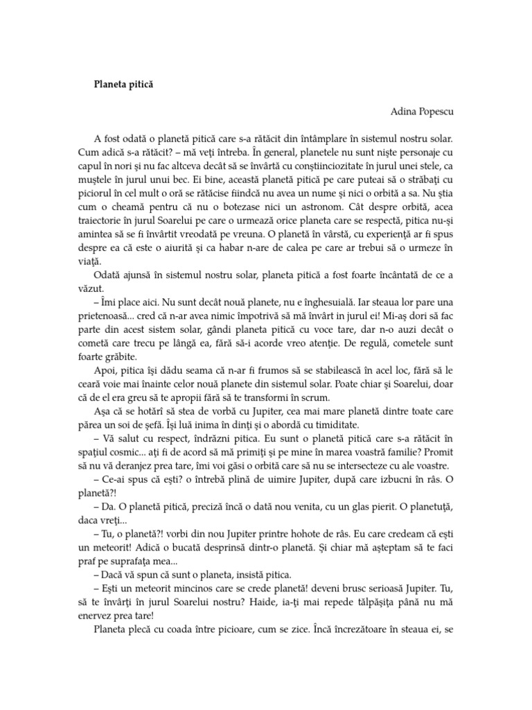 Va Rog Povestea Planeta Pitica De Adina Popescu Dau Coronița Brainly Ro