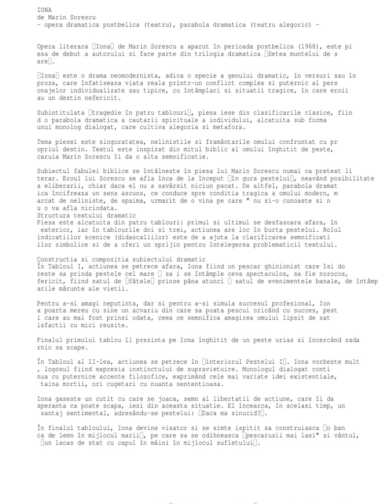 Marin Sorescu Comentariu Iona
