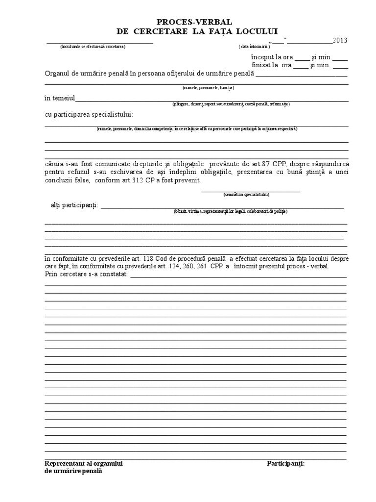 Proces Verbal De Cercetare La Fata Locului