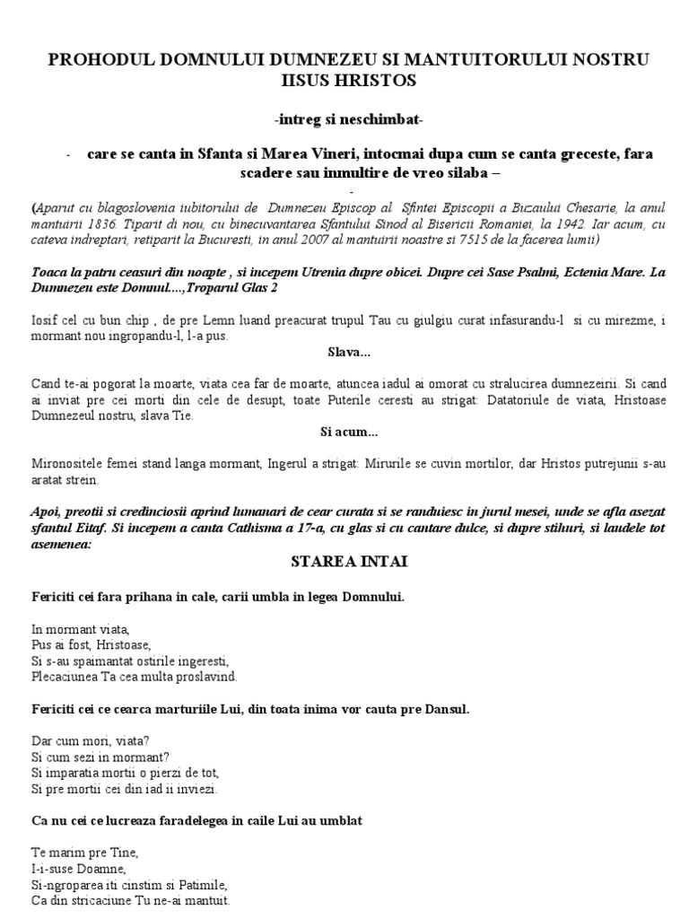 Prohodul Domnului Versurile Complete Ale Prohodului