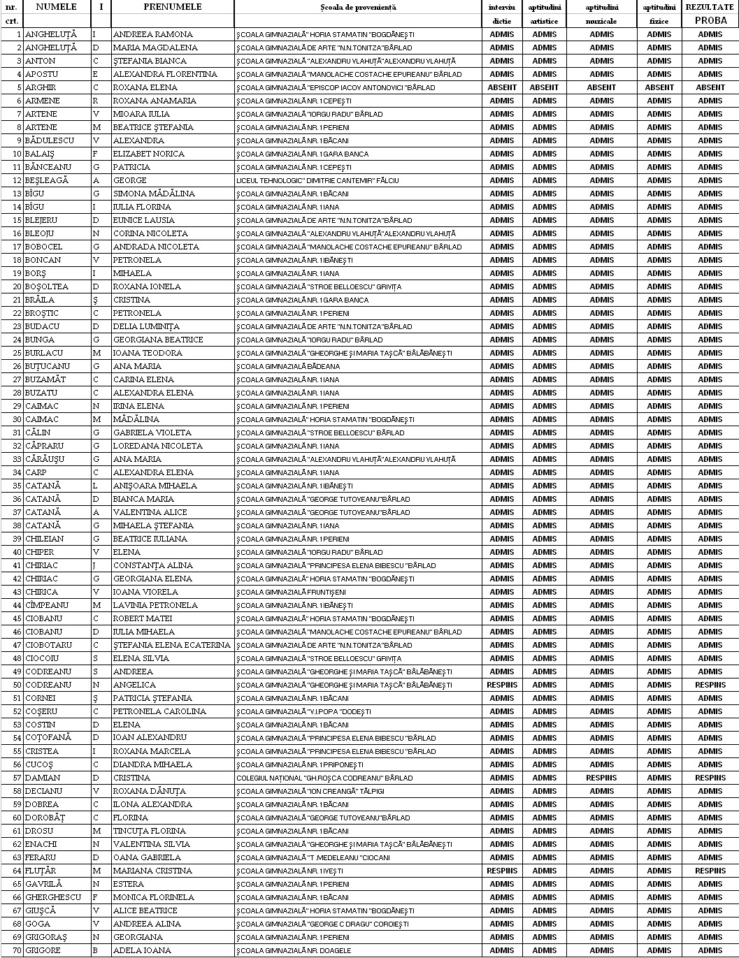 Lpb Liceul Pedagogic Ioan Popescu Barlad Admitere 2015 Rezultate Finale Probe Aptitudini Mai 2015