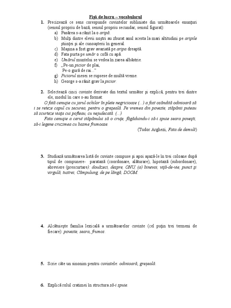 Exercitii Limbaromana Cratima Recapitulare
