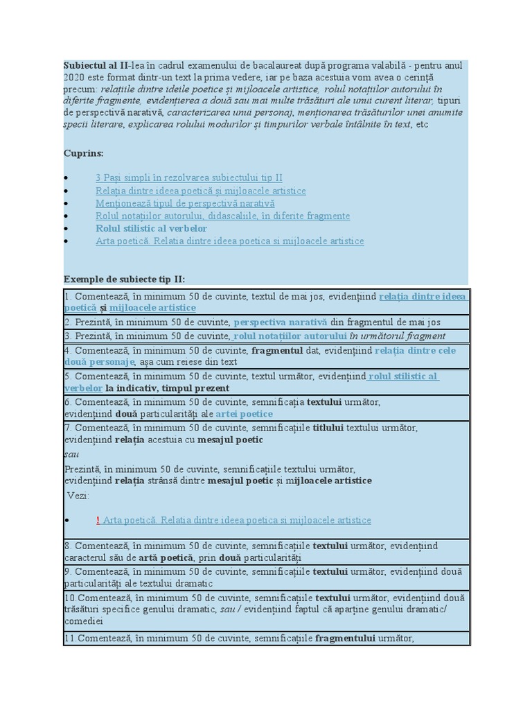 Rolul Modurilor Si Timpurilor Verbale Subiectul Ii Bac Romana