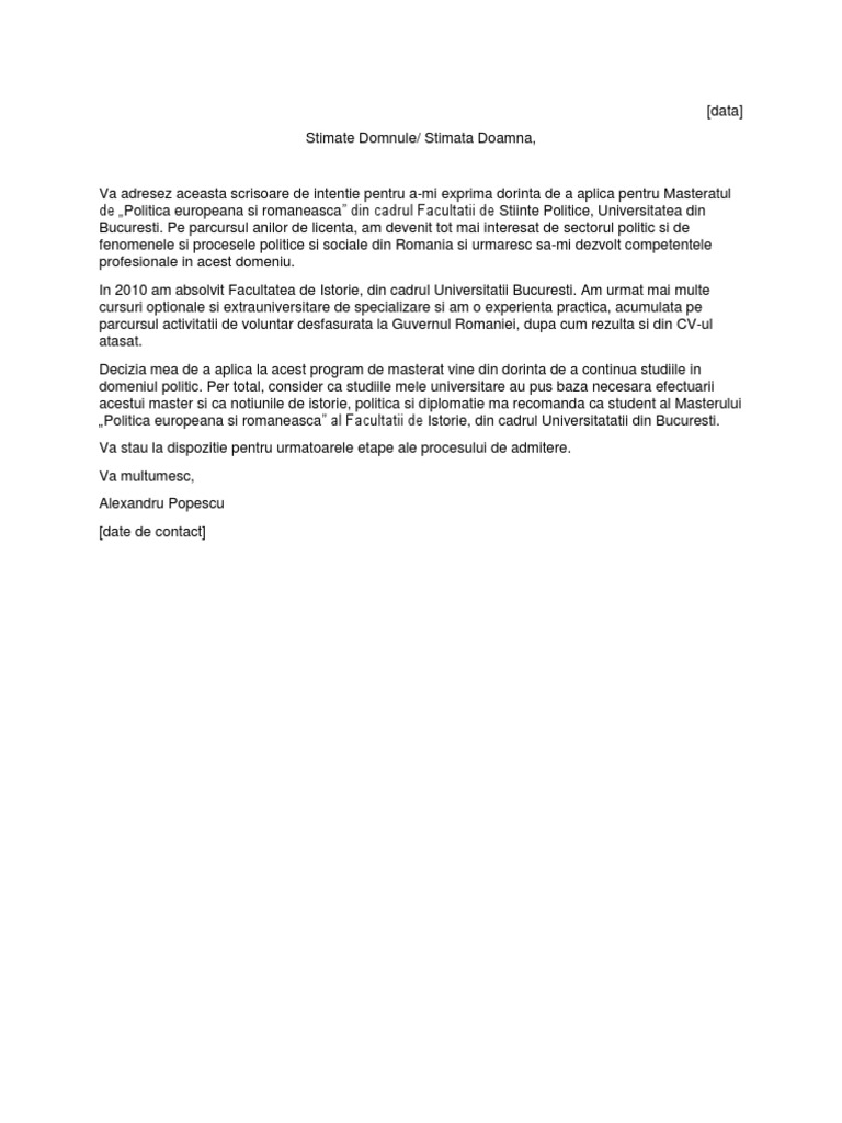 Model Scrisoare De Intentie Facultatea De Stiinte Politice