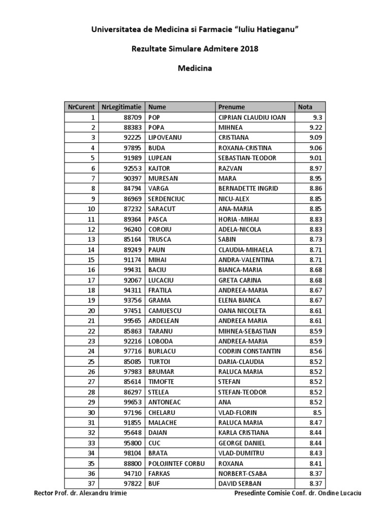 Rezultate Finale Concurs Admitere Sesiunea Iulie 2018 Umfcd