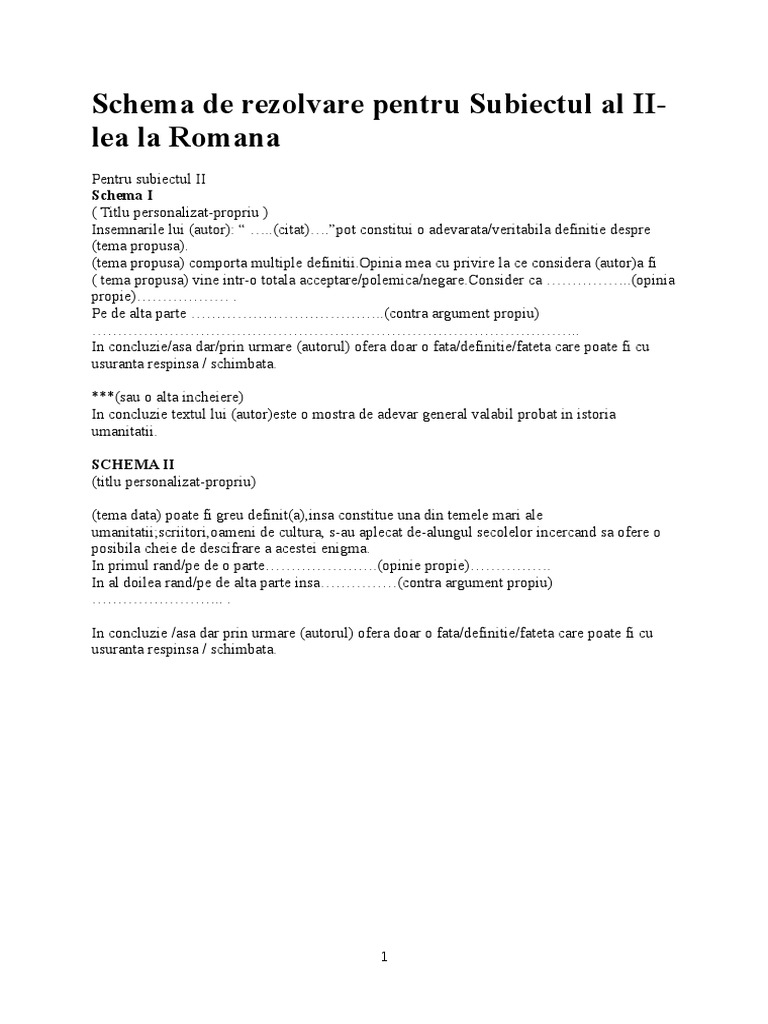Schema De Rezolvare Pentru Subiectul Al Ii Lea La Romana