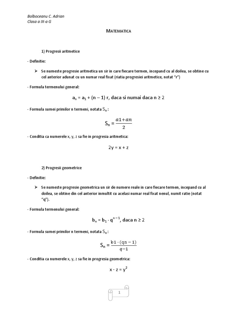 Progresii Aritmetice Progresii Geometrice Formule Teorie Exercitii Rezolvate Din Variantele De Bac