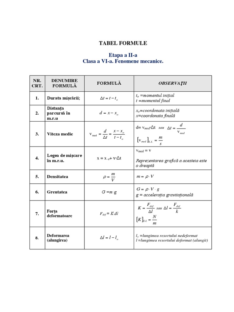 Tabel Formule Clasa A 6 A Matematica Si Fizica