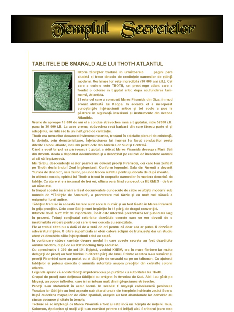 Tablitele De Smarald Ale Lui Thoth Atlantul Cunoscut Ulterior Ca Hermes Trismegistus Procarti Ro